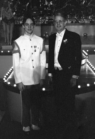 Chris with high school band director Earl W. McConnell, Jr. in 1996.
